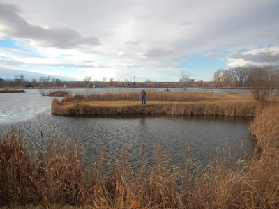We are fishing the only ice free hole on Sandpiper.